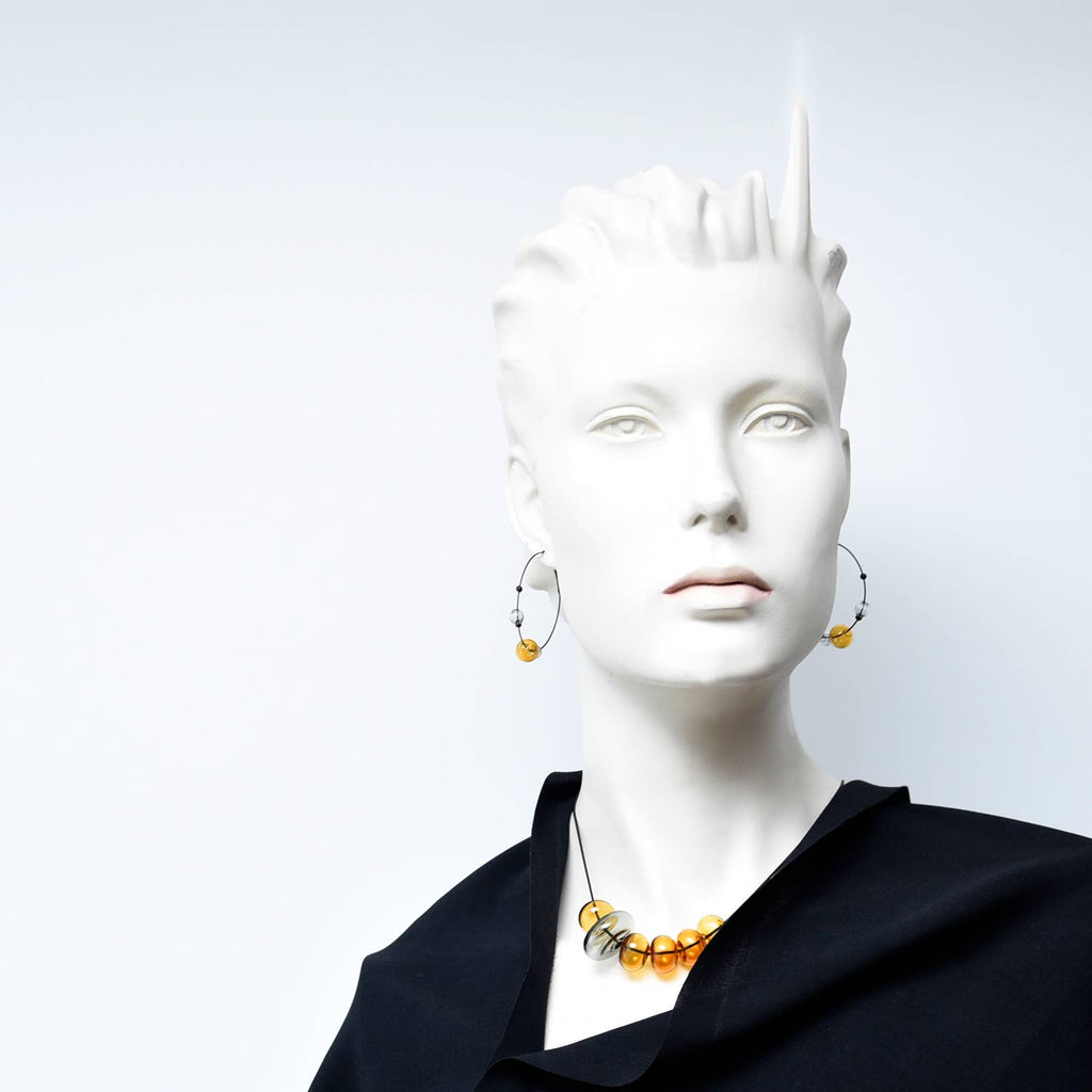 ECLIPSE HOOP EARRINGS - GREY/AMBER