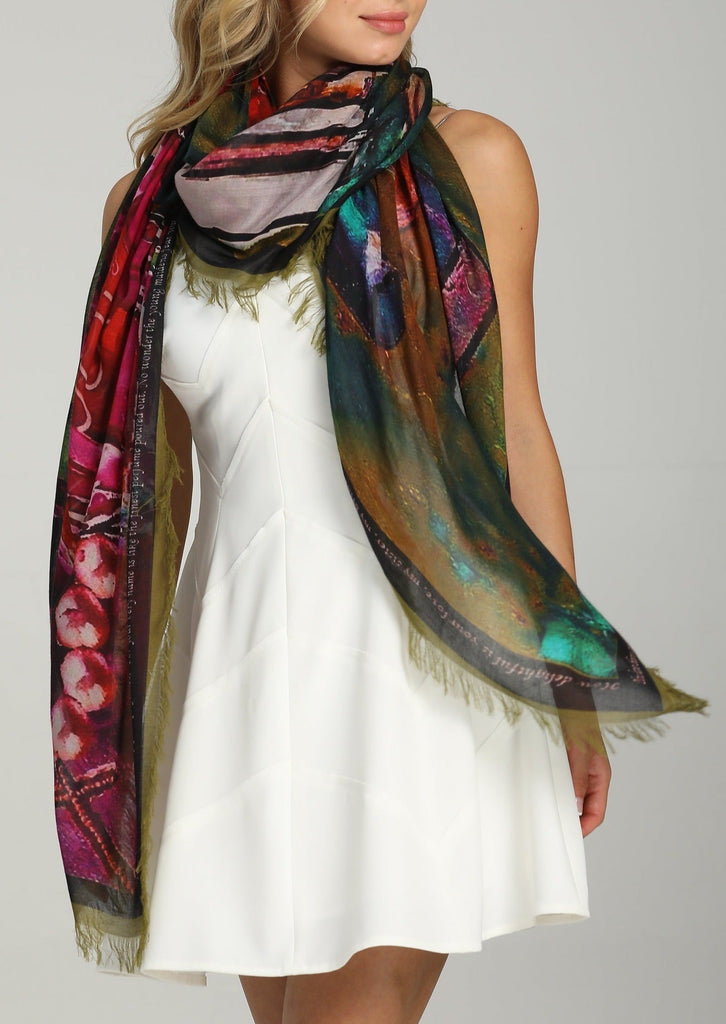 Love's Pure Light are luxury hand painted scarves. Designed and made in Canada, they are silky soft and made from quality silk/modal blend. They are versatile and complement any outfit. Each one of these luxury scarves come with a unique promise card which expresses the design and tell the story about the handpainted design. You can collect these promise cards and read them on your tough days and your good days! These scarves inspire you to be the living expression , the voice of Love the world needs.
