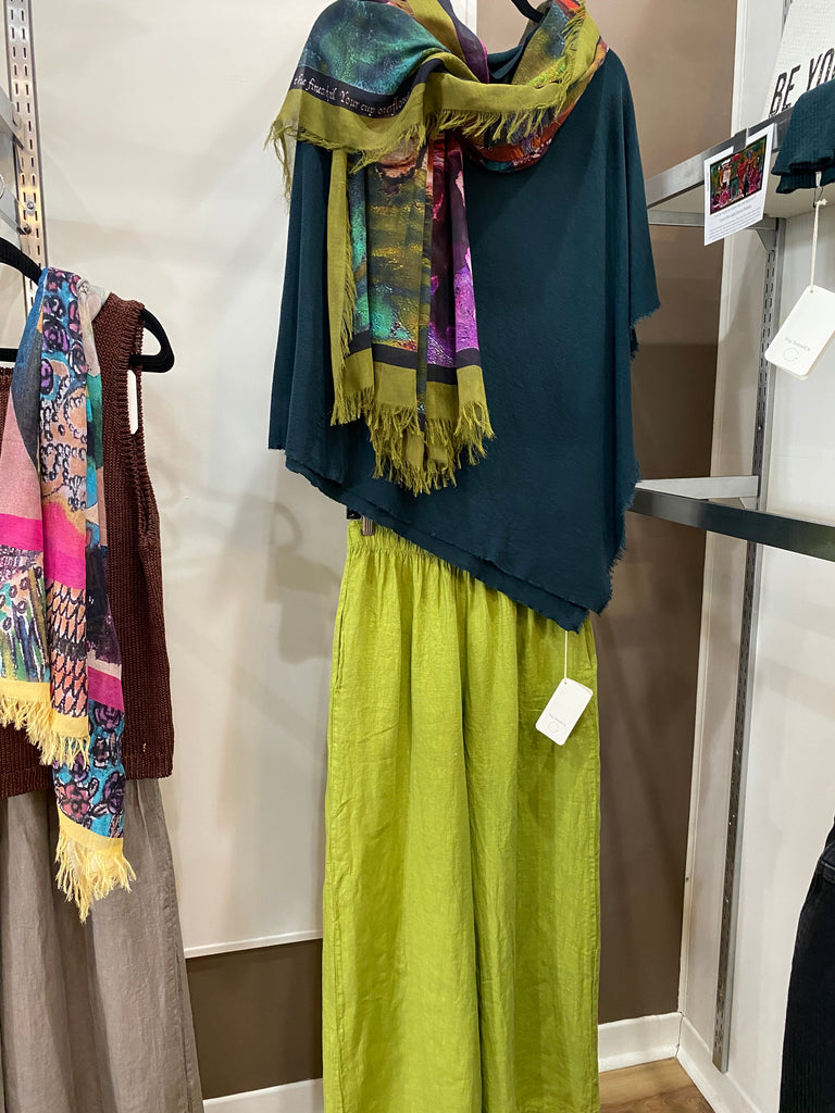 Embrace effortless summer style with these 100% linen pants in vibrant lime. The relaxed wide-leg silhouette pairs beautifully with whites, blacks, and greens for endless warm-weather outfits. An elastic waist ensures all-day comfort, while functional side pockets keep essentials within reach. Perfect for casual adventures, beach getaways, or laid-back days at home. Made in Italy.