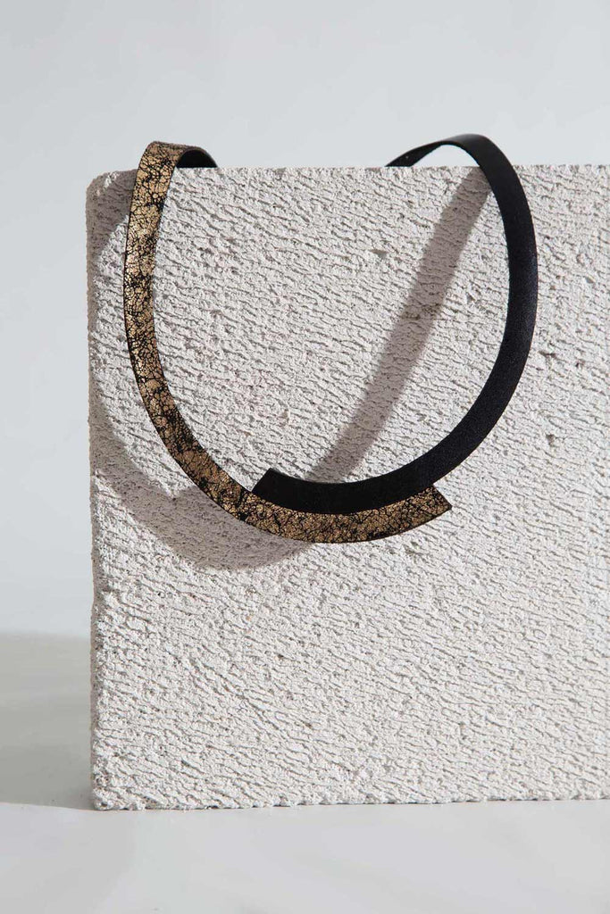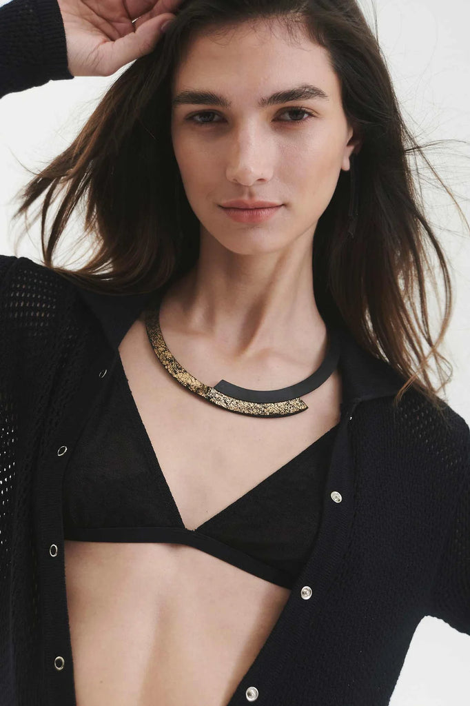 Handcrafted by skilled female artisans in Buenos Aires atelier, this leather necklace merges timeless elegance with exceptional craftsmanship. The gold and black design features a secure magnetic clasp for reliable everyday wear. Lightweight and versatile, it transitions effortlessly from professional settings to evening occasions. Each piece arrives in refined packaging, making it an ideal gift or personal indulgence. A sophisticated accessory that speaks to quality and intentional design.