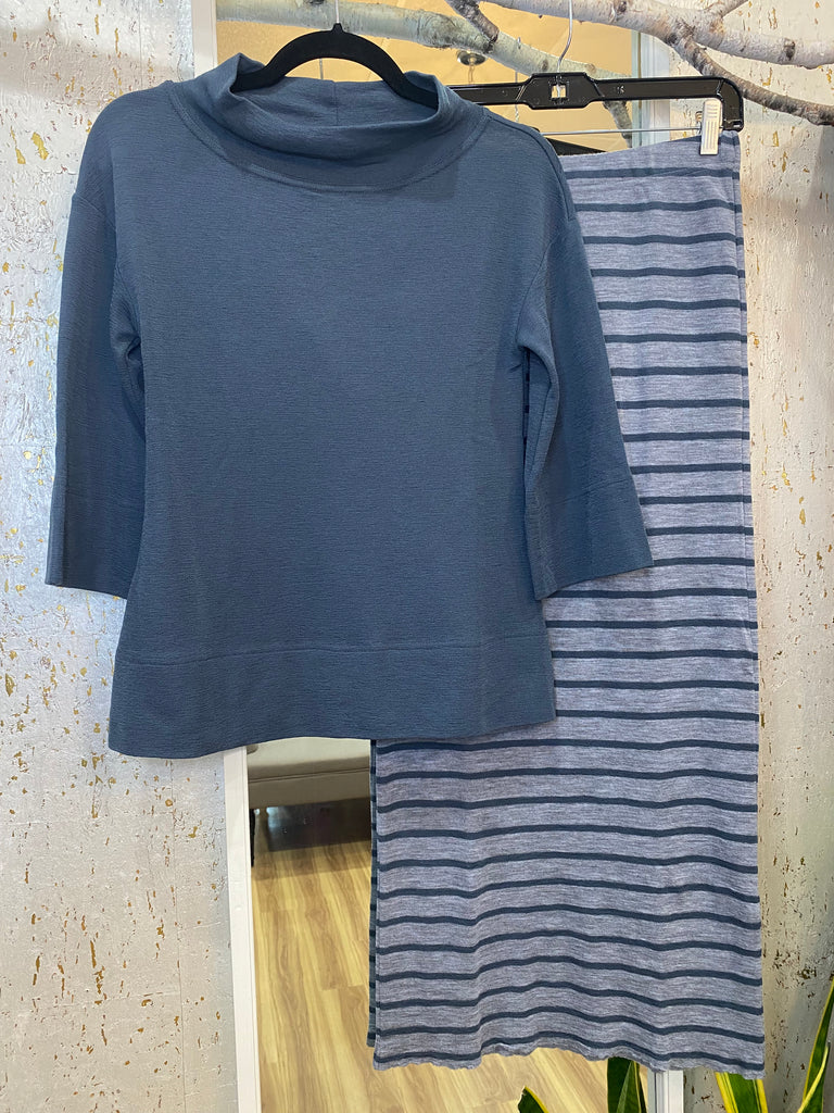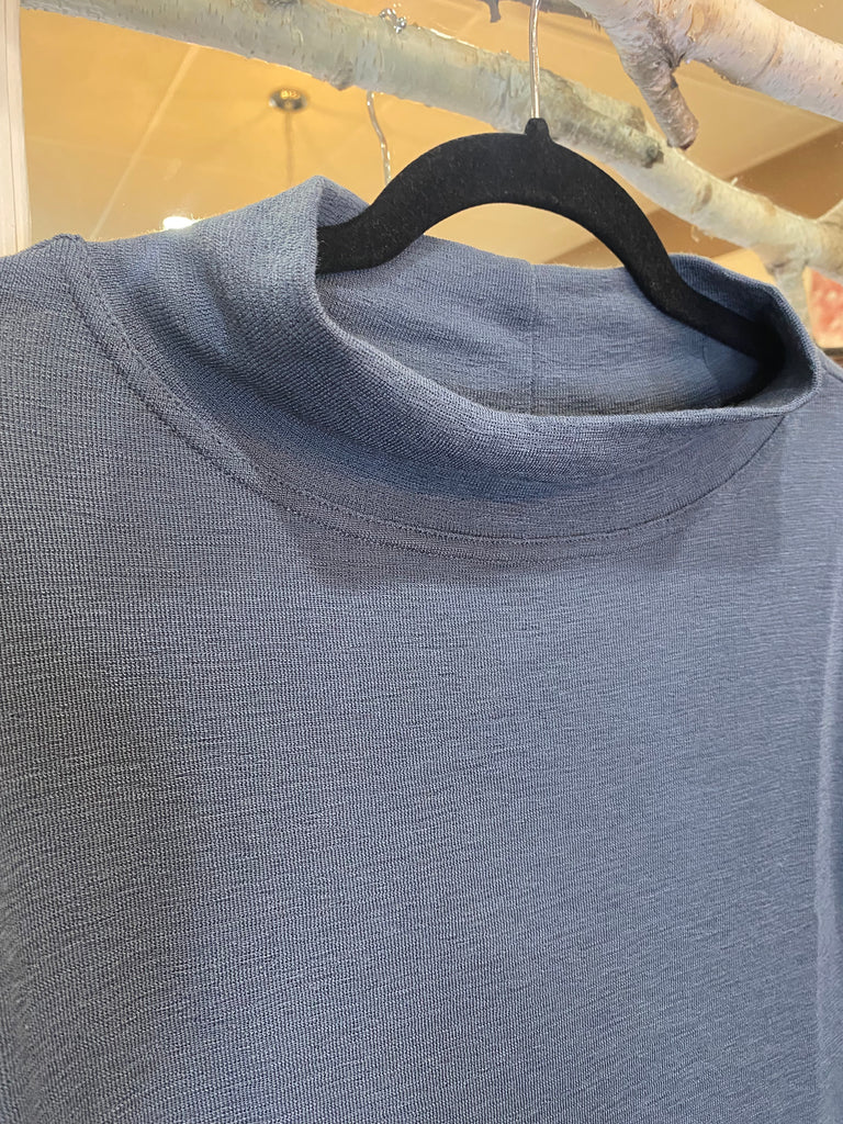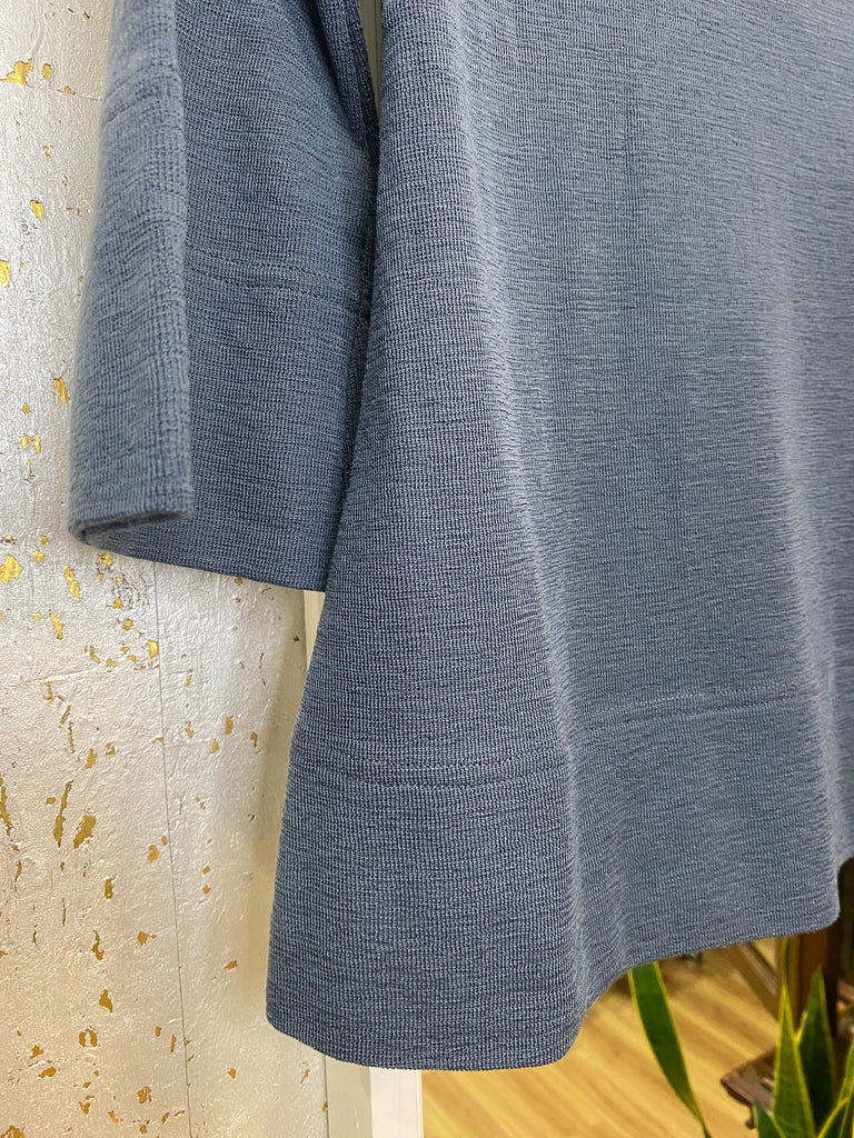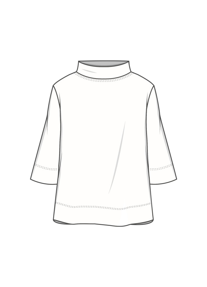 This merino wool top features a flattering A-line silhouette with a looser fitted bonded neckline, creating a refined yet comfortable look. The 3/4 length slight bell sleeves add subtle elegance and movement. Designed to pair seamlessly with jeans or the 5005 skirt, it offers versatile styling options. Crafted in Europe, this top exemplifies quality and timeless design.