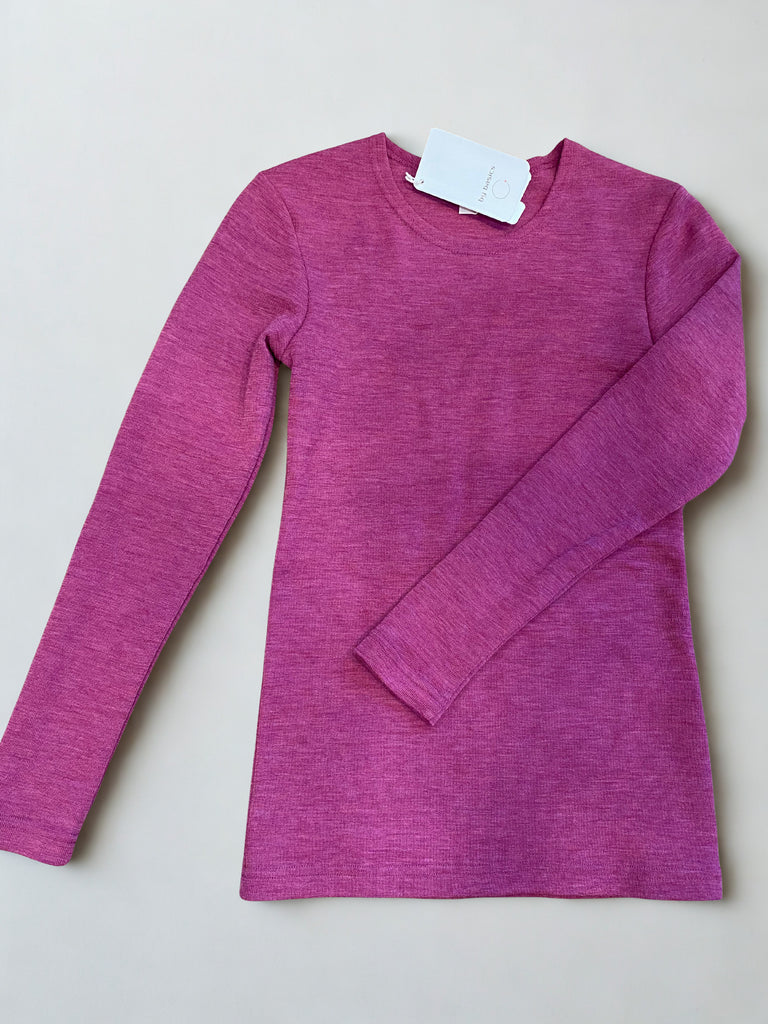 Crafted from ultralight 100% merino wool, this fitted round-neck top delivers exceptional breathability and softness for year-round wear. The versatile pink melange hue pairs effortlessly with jeans, white pants, and linen pieces, making it an essential travel companion. Merino's natural temperature-regulating properties ensure comfort across seasons, while the refined fit transitions seamlessly from casual to polished occasions.