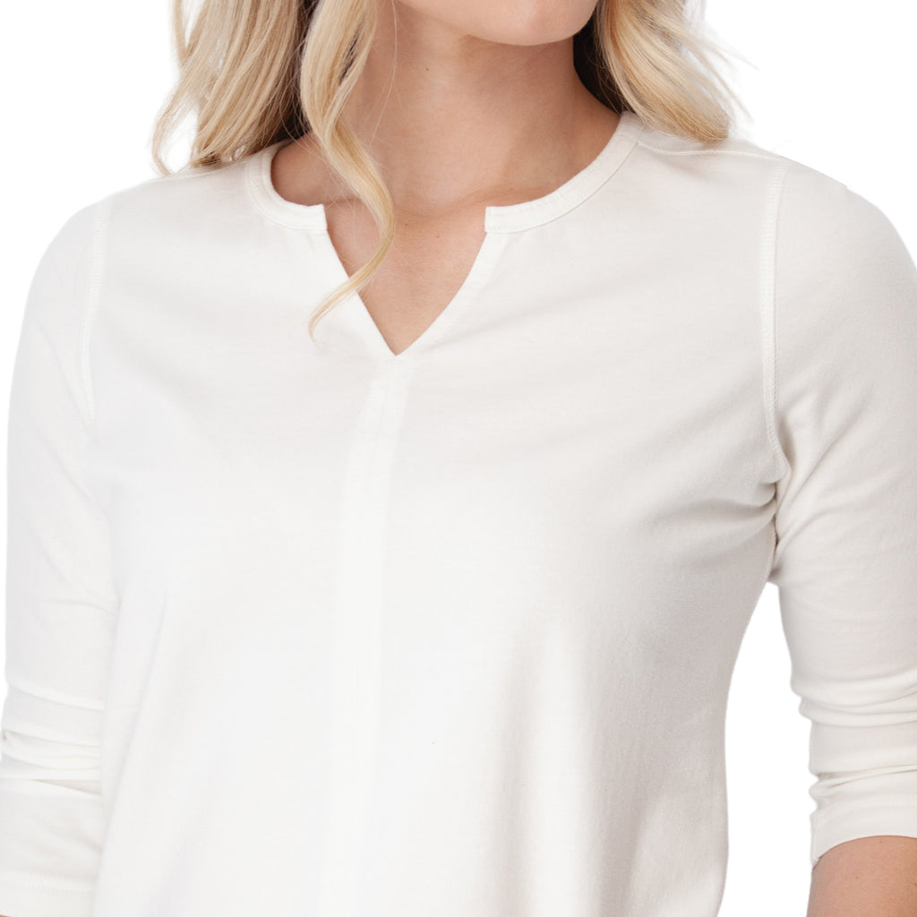 Everyday essentials don't have to be ordinary. With its flattering notch neckline, curved shirttail hem, and just-right sleeve length, this tee is your new low-maintenance bestie. The ultra-soft blend of organic cotton with a touch of spandex stretches where you need it and moves with you through your days. Garment-dyed for a lived-in look and feel, it is perfect for layering or on its own. Made in a Fair Trade Certified™ factory, it's a feel-good favorite you'll reach for on repeat. 95% organic cotton, 5% spandex single knit jersey. 25" length (size medium). V-notch neck. Garment dyed. Shirttail hemline. Machine wash cold, tumble dry low, warm iron if needed. Made in a Fair Trade Certified™ factory in India.