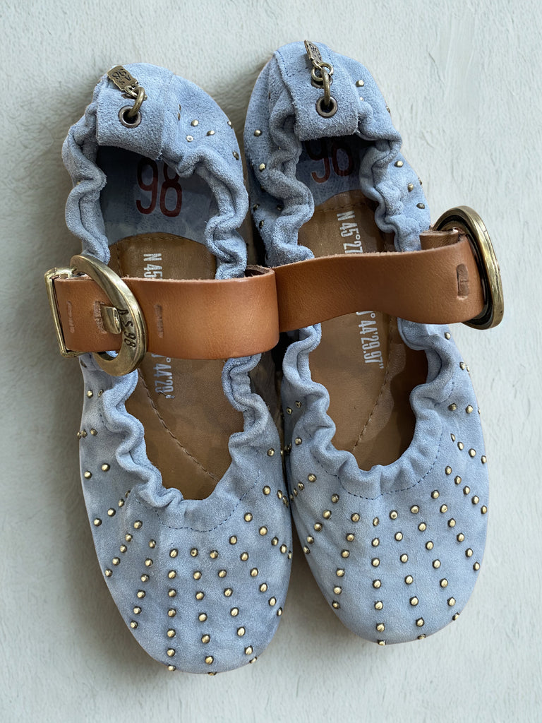 The Oasi Plus represents A.S.98's signature blend of Italian craftsmanship and contemporary edge. Handcrafted from premium vegetable-tanned leather, it balances feminine silhouette with bold design elements—a leather strap with a striking gold buckle and antique gold studs create visual intrigue without sacrificing wearability. The ballerina silhouette gains unexpected attitude through artisanal finishing and natural leather variations that ensure each pair is distinctly yours. Built for comfort and versatility, the Oasi Plus transitions seamlessly from day to evening, delivering the rare combination of refined aesthetics and all-day ease.