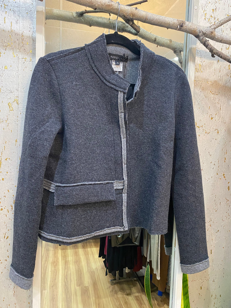 Crafted from soft, cozy wool blend, this jacket offers warmth and comfort for colder months. Its fun yet functional design features a front patch pocket, button closure, and exposed raw edge trims with contrasting details for a refined yet relaxed look. Versatile and stylish, it pairs effortlessly with jeans or over dresses. Expertly designed and made in Europe, this jacket combines quality craftsmanship with practical elegance.